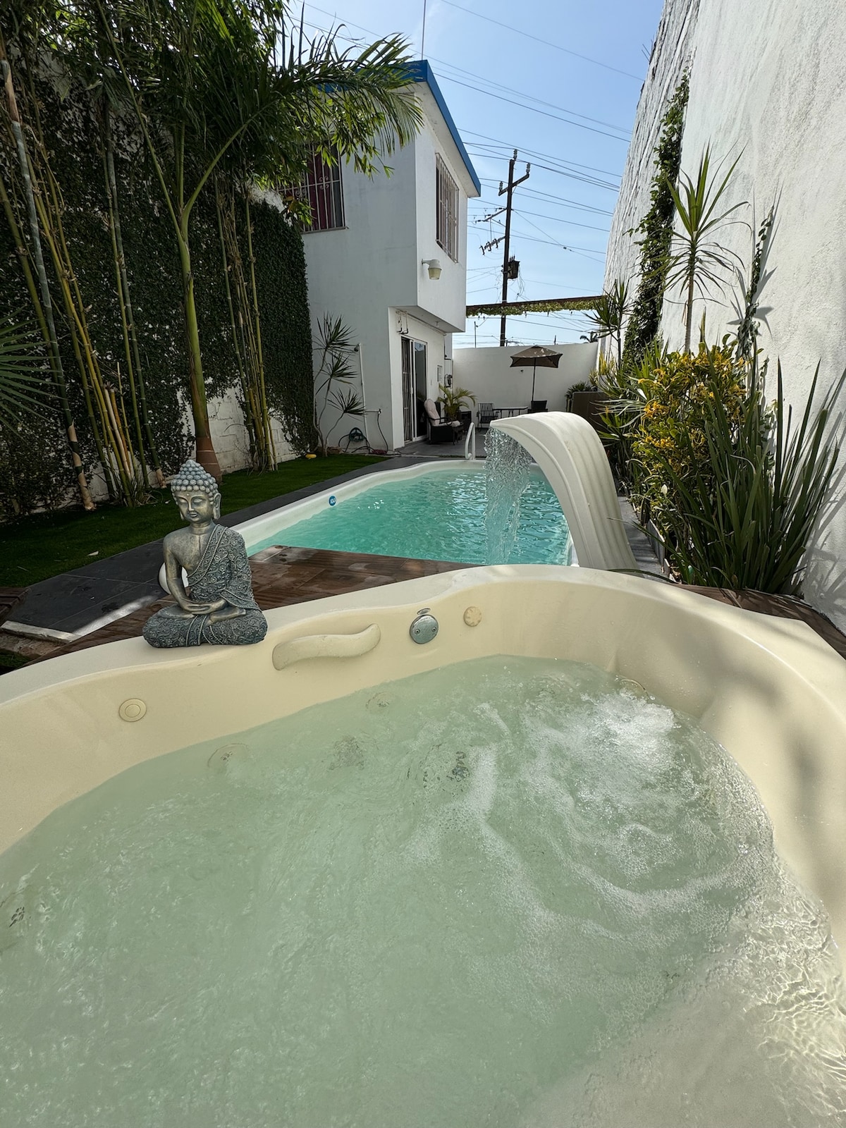 Relax on this unique and peaceful getaway. Air-conditioned, 15 minutes to the beach and 12 minutes to downtown, shopping mall and casino 5 minutes, laundry and restaurants , convenience stores 2 blocks away, cleanliness and security guaranteed, 3 smart TV with IZZI, microwave oven, minibar, iron, hairdryer, blender, full service coffee, ice maker, barbecue, paraffin, intimate bar with lounge.