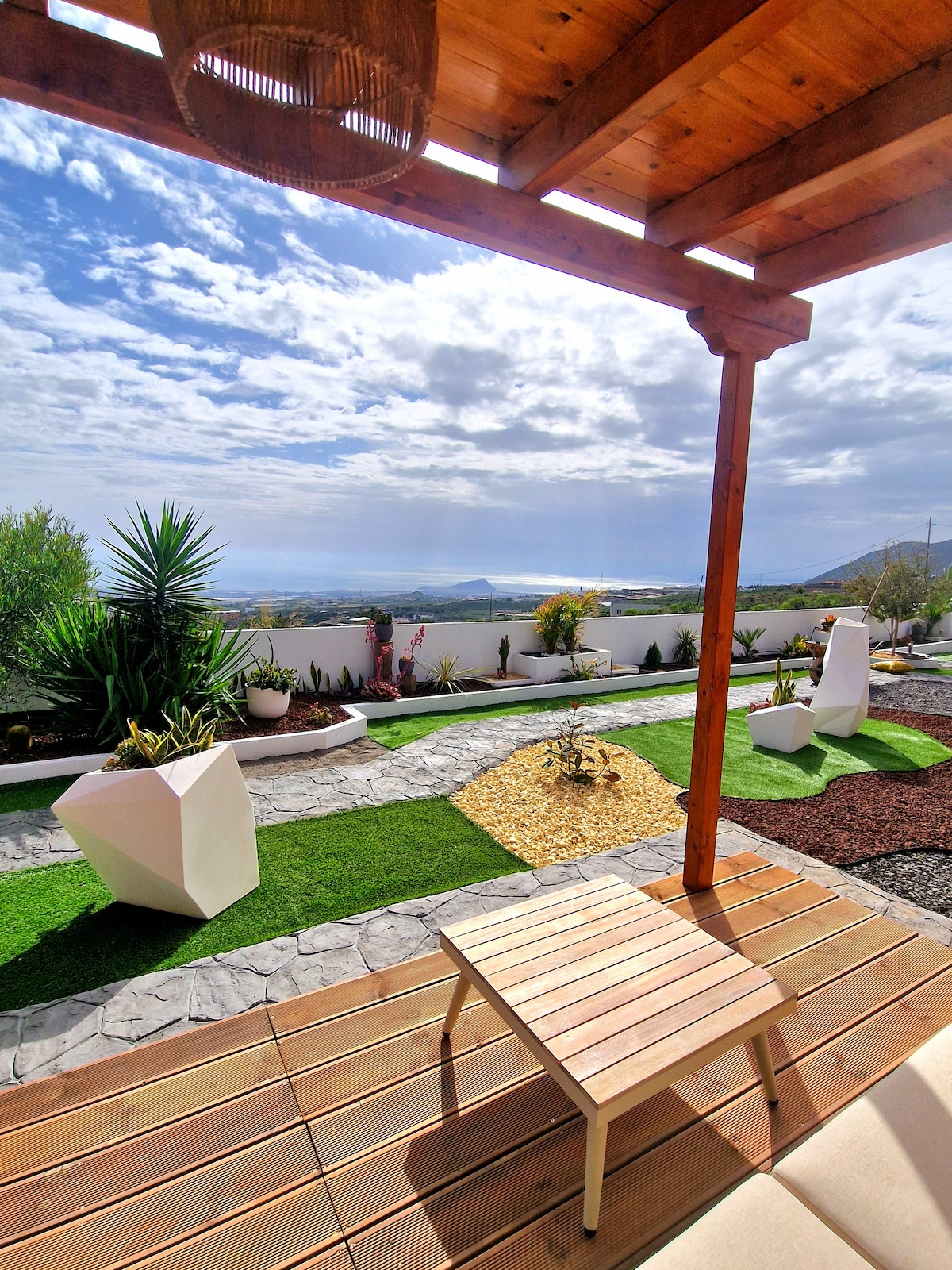 Your private villa with huge outdoor jacuzzi & plunge pool with 180º stunning Ocean and Teide view. Walking distance to the coast, natural pools, all photos were taken down here Unique villa nestled in 400m2 lush volcanic eco garden. . Exclusive neighborhood to enjoy the tranquility, birds, lizards and kestrels, close to trendy restaurants, wineries and cocktail bars. Perfect to chill out, sunbathing, barbacue, enjoy the sunset from the jacuzzi or pool. 5mins to highway to explore the Island.