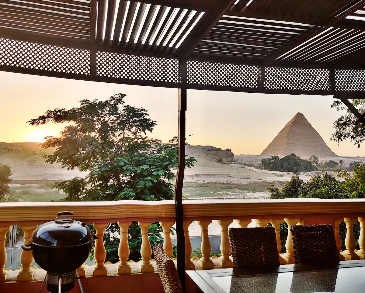 Welcome to your private rooftop retreat in the heart of Giza! This charming studio sits on a spacious rooftop, offering breathtaking views of the Pyramids—perfect for sunrise coffee, sunset lounging in the hammock, or soaking in your very own jacuzzi under the stars. A fully equipped kitchen Comfortable sleeping and relaxation area Private entrance for your peace and privacy Whether you're here for adventure or relaxation, this studio offers the perfect mix of comfort, and unforgettable view.