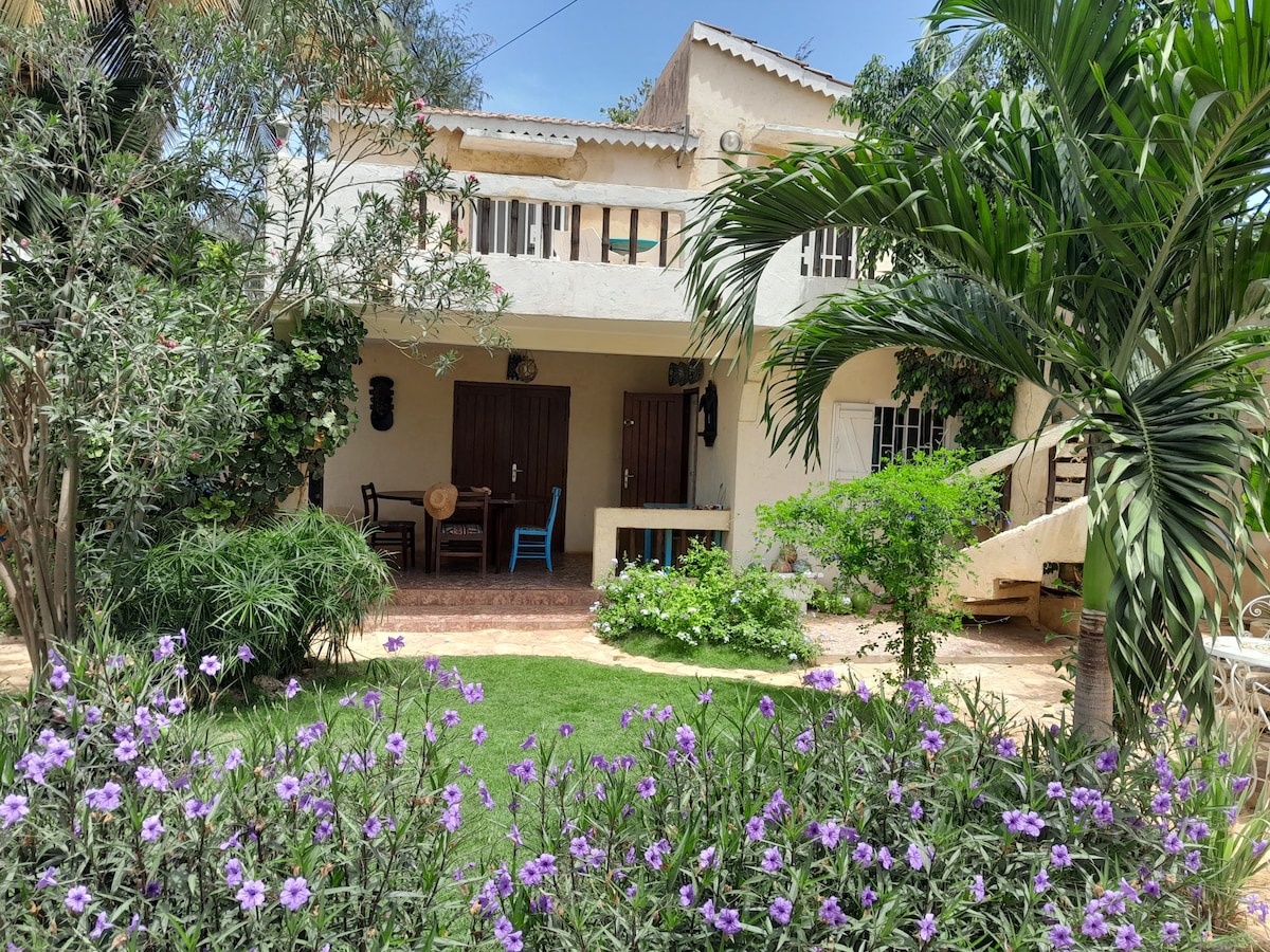 A family friendly cottage in peaceful Popenguine. Our home is elevated just above the beach providing gorgeous views from everywhere in the house. Surrounded by bougainvillea and lush trees the house feels private and secluded. The large covered downstairs terrace is where you will spend most of your time, but when you need to go indoors, you'll be comfy and cool.