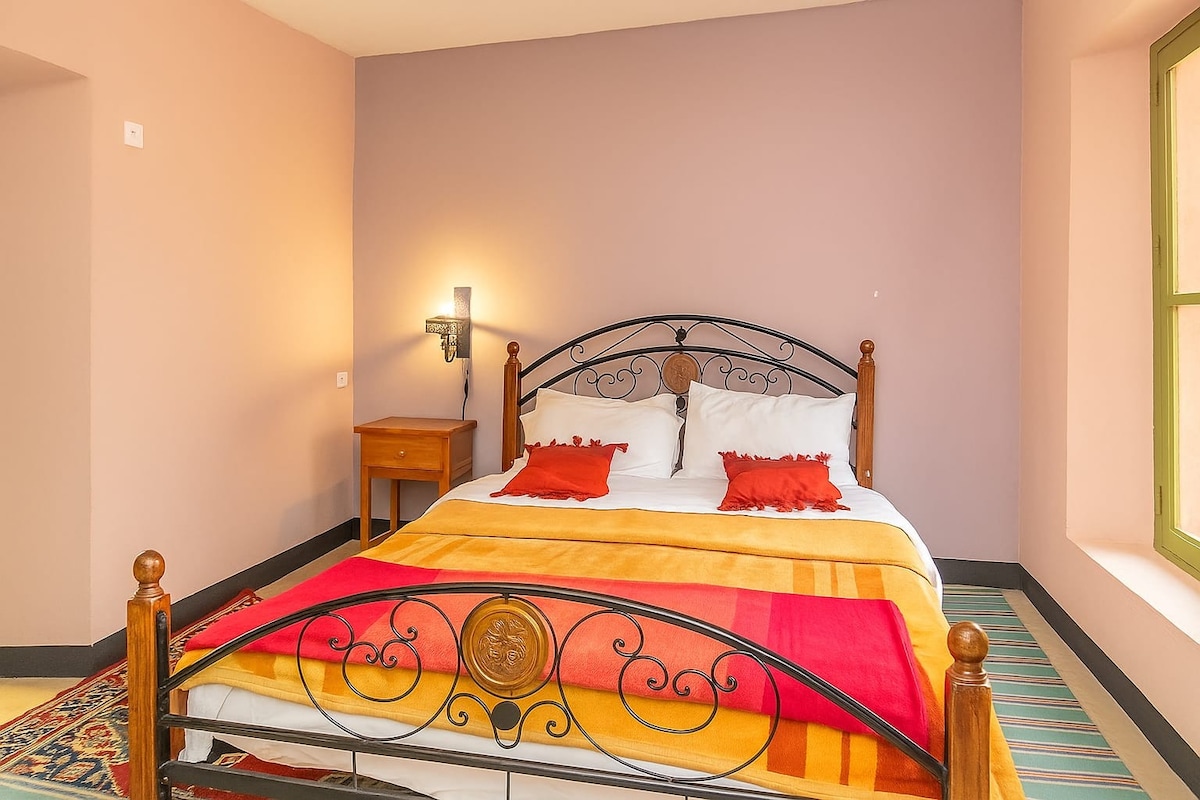 Enjoy the elegance of a bygone era by staying in our kasbah built on clay. Nicely decorated and with a unique panoramic view. The house is located in the dades valley halfway from Marrakech and the dunes of the Merzouga desert is Chgaga rooms with private shower and toilet, the shared spaces are 2 living rooms, dining rooms, two terraces with 360 ° view on the valley of the dades. Free parking, free 100Mbps fiber optic internet connection, restaurant on site