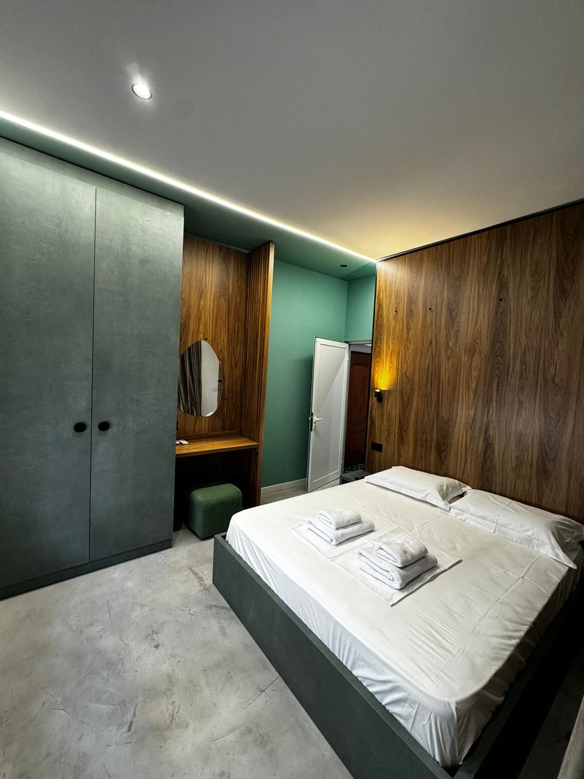 Private apartment (33 m²) with a 30 m² outdoor area, located in the heart of Tirana’s historic center. Just a short walk from Skanderbeg Square, Blloku, and Mother Teresa’s house. Includes kitchen, bathroom, Wi-Fi, and A/C. The outdoor space is ideal for relaxing, and you can safely park bicycles or a scooter. Quiet and convenient location, perfect for exploring the city on foot.