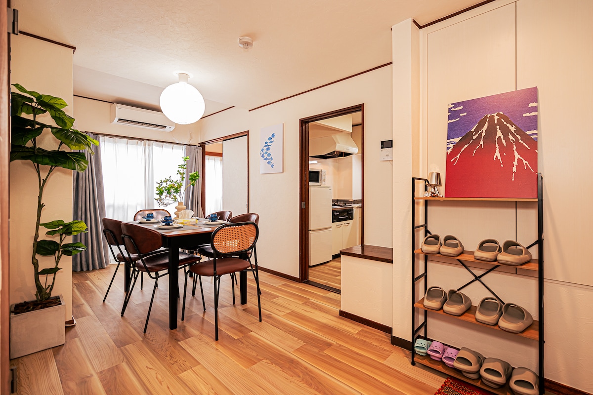 2340inn: Pools and commercial area, 4 minutes to subway, rooftop with view of Mount Fuji, beautiful design 55 square meters, Japanese tatami + living room, 2 bathrooms