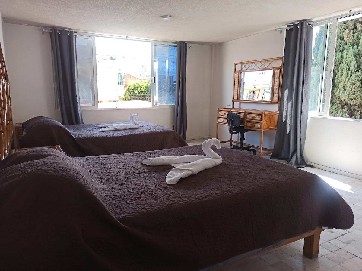 Safe and quiet house, 3 bedrooms for up to 6 people, equipped kitchen, parking inside the subdivision. Surrounded by the town's main avenues and just 10 minutes from the main Town Square and GalerĂas Metepec shopping malls. Metepec, a magical town and cradle of the tree of life, has a great pottery tradition and the center is only an 8-minute drive away. The space is 15 minutes from the airport and 30 minutes from the bus station and downtown Toluca.