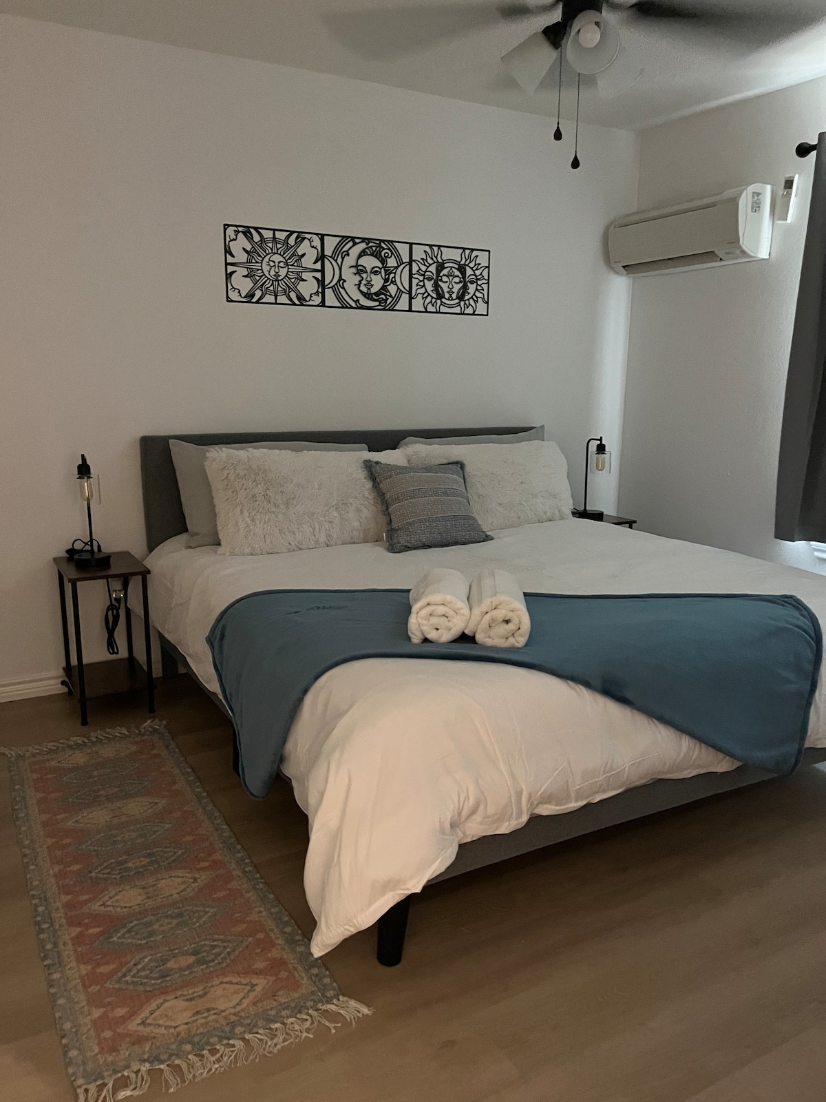 Enjoy a peaceful stay at this quiet, spacious guesthouse. This unique property is minutes from Woodway and Hewitt Drive with convenient access to food and fun! Only 12 miles from downtown Waco, take advantage of all the city has to offer and then retreat to the quiet nights of Lorena. This one bedroom, private building is separate from the main house. The bedroom, bathroom, and main area all have separate entrances. The living area has a queen-sized sofa bed for additional guests.