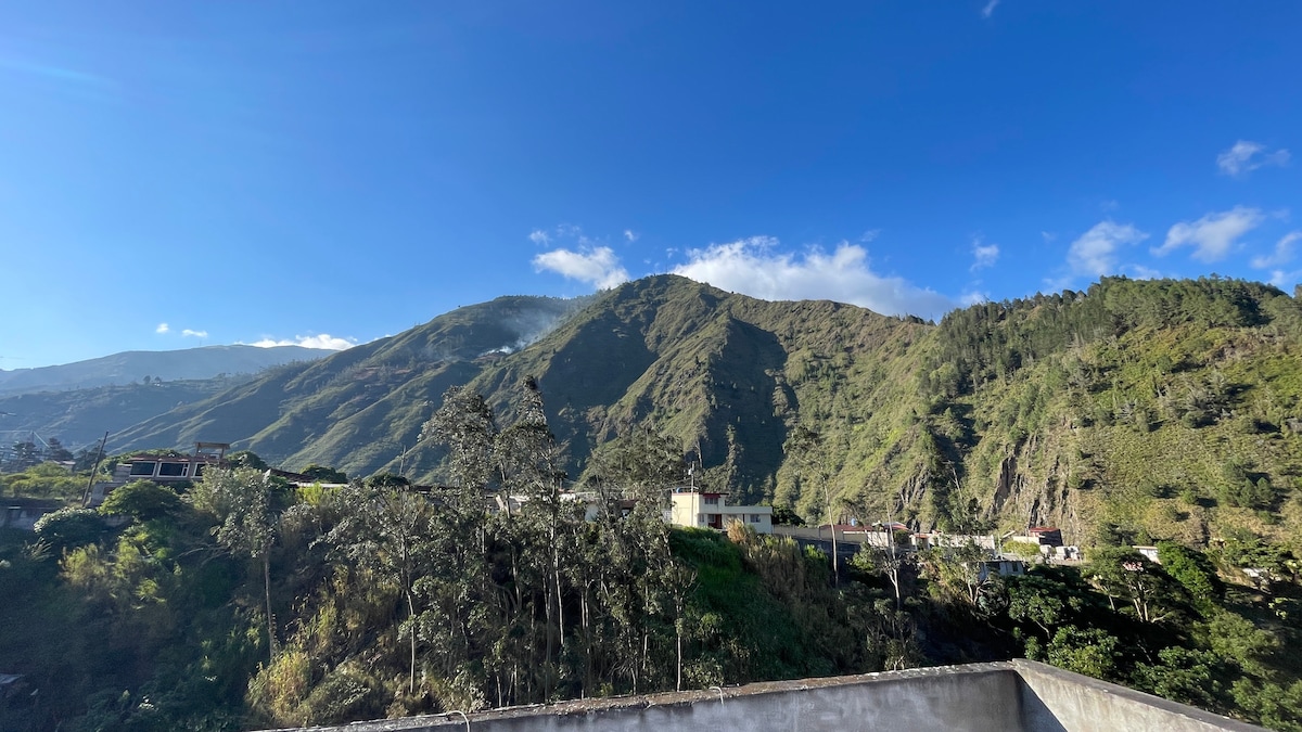 Furnished vacation home overlooking the Tungurahua Volcano, ideal for a family vacation, facilities in excellent condition and focused on your rest, fun and comfort, live an unforgettable experience as you deserve. We also provide information about the city's tourist spots. WE LOOK FORWARD TO SEEING YOU ❤️