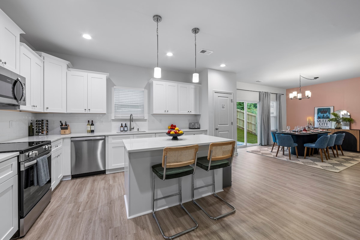 Bring the whole family to Charlotte's Luxurious Farmhouse Villa that boasts over 3500 sq. ft. of room for fun and relaxation. Perfect for family retreats, church retreats, corporate events, small events or family vacations. Our home features 3 master en-suites, and 4 additional sleeping areas for a total of 20 guests! Enjoy the cozy and modern black and white farmhouse decor in the common areas. Plenty of seating and space for everyone whether you are hanging out indoors or out!