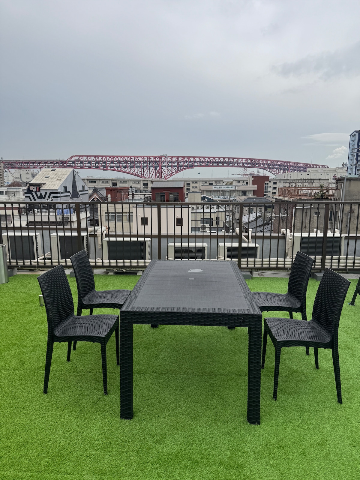 Top floor terrace with pool, 7 minutes from Nankai Shin-Imamiya Station, 3 minutes from Hanazonocho Station, gym on site, 5 minutes by train to Namba