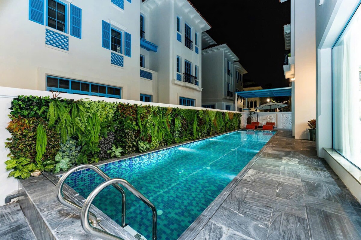 Your private coastal villa in the heart of Ha Long—steps from the beach and cafés. 6 en-suite bedrooms, private saltwater pool and lush garden set the tone for easy living. Soak in the jacuzzi, detox in the Finnish sauna, then gather in the lounge or cook easy feasts in a fully equipped kitchen. Families love the Kids’ Room; an elevator reaches every floor, including the spa room and laundry. Minutes to Sun World, night market & cruise piers. Free Wi-Fi & parking. Private BBQ patio for cookouts.