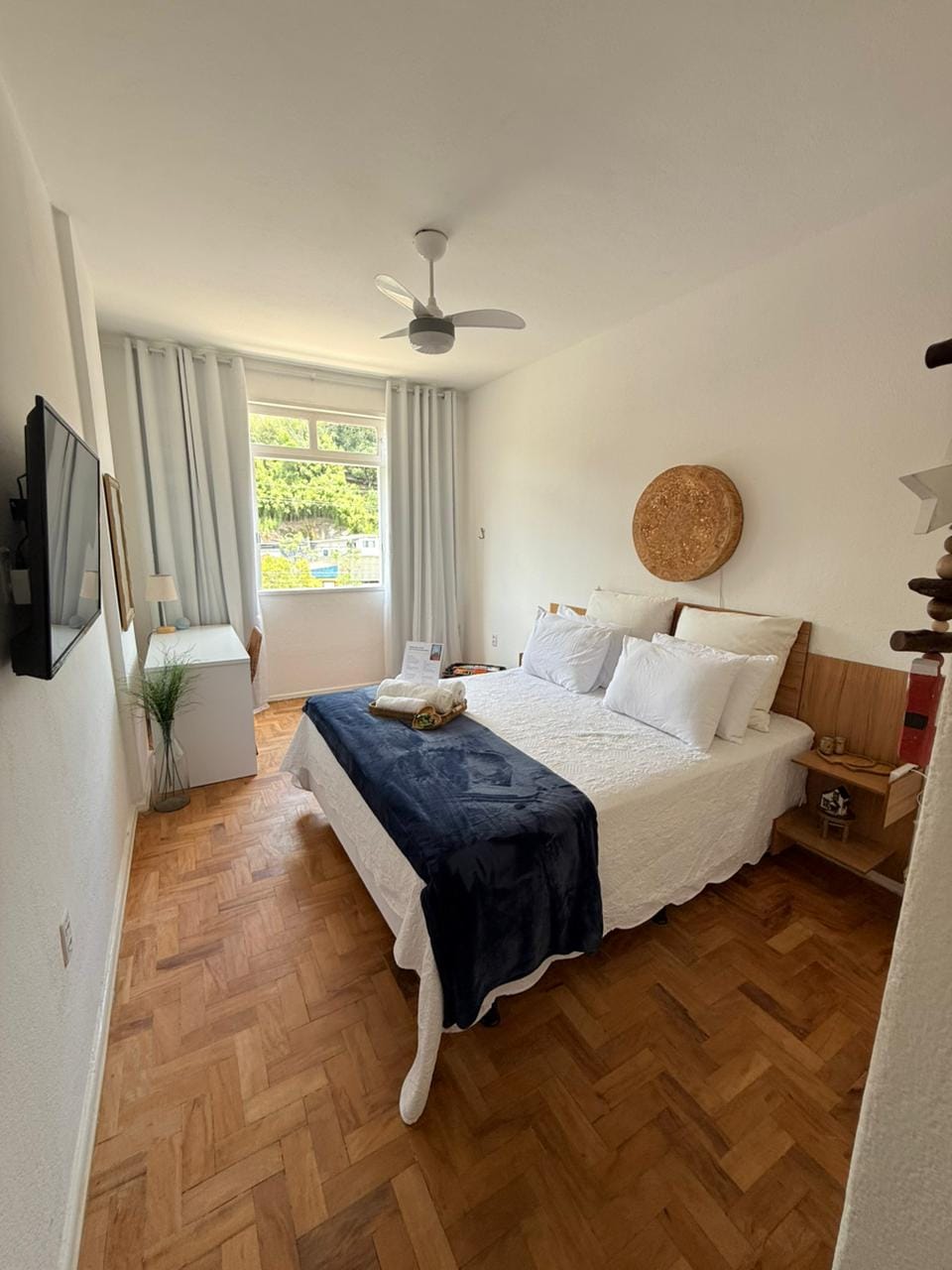 Full apartment in the heart of Miguel Pereira, charming, cozy and newly renovated, located in this quiet and safe city. Located 500 meters from Rua Coberta (Miguel Pereira Gastronomic Pole), Rua Torta and boarding for Maria Fumaça. 4-minute walk to the city center (market, restaurant, bakery and pharmacy). Approximately 500 meters from the bus stop. Front desk 24/7. With 1 parking space.