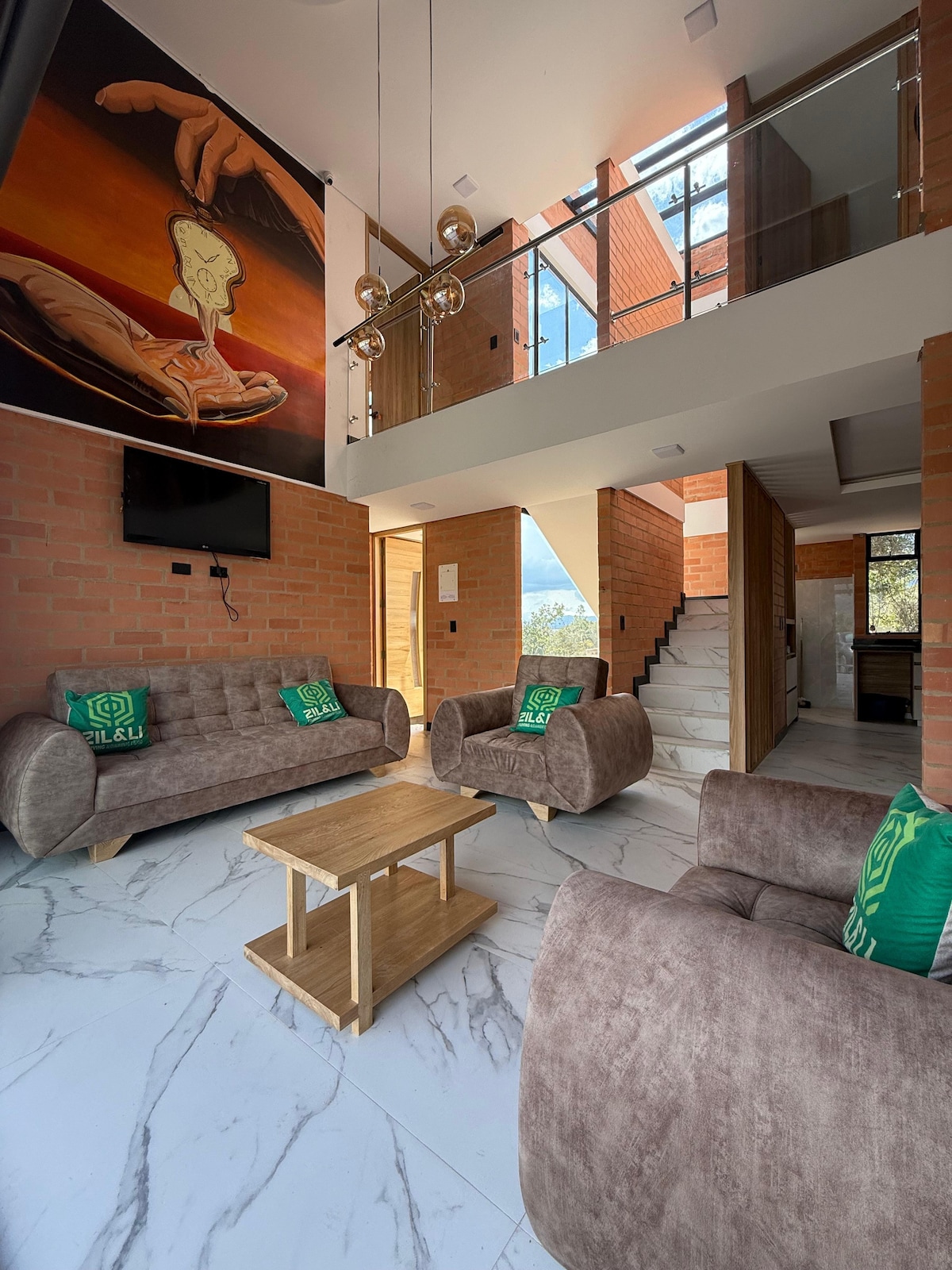 Beautiful country house, 5 minutes from Villa de Leyva, fully equipped, washing machine, dryer, hair dryer. Ideal for long stays, three bedrooms with private bathroom, guest bathroom, living room, dining room, kitchen, hot tub in the garden (additional cost for use), Wi-Fi, private parking for five cars. With all the comforts of a 5-star hotel⭐️⭐️⭐️⭐️⭐️. Ideal place for remote work 🧑💻or family vacation. Terrace overlooking the mountain and Villa de Leyva.