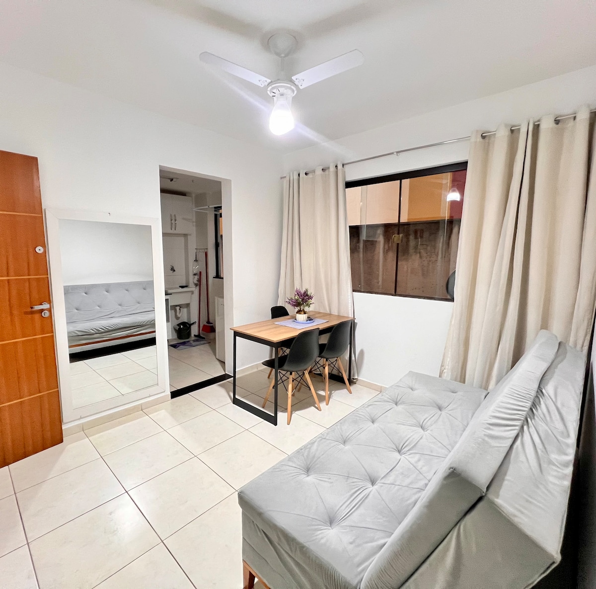 Entire apartment, with everything you need to have a quiet stay! Check in Flexible, with electronic access. Located at 300 meters(3 mim) from UFV (4 pilastras). Situated in the central region of the city, a few meters from everything you need: restaurants, cafeterias, bars, markets, bakeries, laundries, pharmacies, gyms and more Check-in times (2pm) and checkout (11hs). Our flexible check-in and checkout ( to arrange). Contact us for more details!