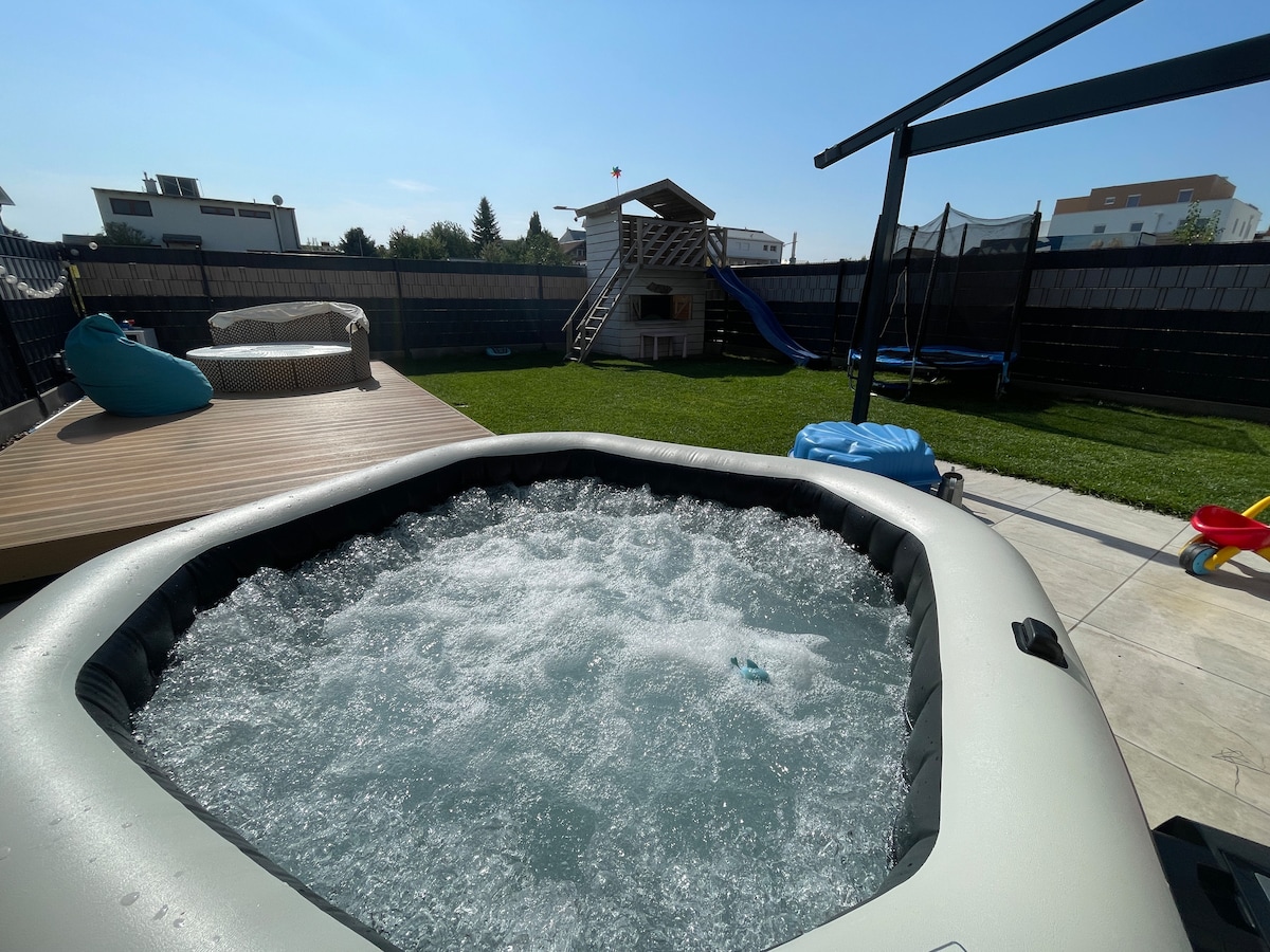 This new & cosy home, perfect for families, is located 7 mins by public transport from the Tube station Leopoldau (on the U1 line which goes straight to central Vienna). You'll instantly feel at home, we have a fireplace, video projector, a garden, a very well equipped kitchen, lots of games for kids and a heated pool. IMPORTANT: in exchange for the discounted price for this big, brandnew house, you'll take care of our 2 cats (just feed them twice a day - takes 3 minutes) during your stay. :)