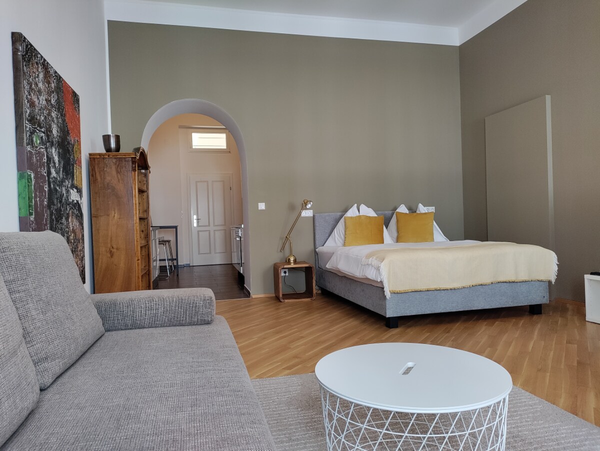 Stylish 1-room apartment (45 m²) in the heart of Vienna with separate sleeping area (160 cm pocket spring mattress), spacious bathroom, washer-dryer, and fully equipped kitchen (incl. Nespresso machine). Balcony, A/C, blackout curtains, sofa bed for 1–2 children, dining area for 4. Airport bus stops right in front of the building. Shared rooftop terrace with beautiful views over Vienna. Perfect location for sightseeing, culture, and culinary experiences!