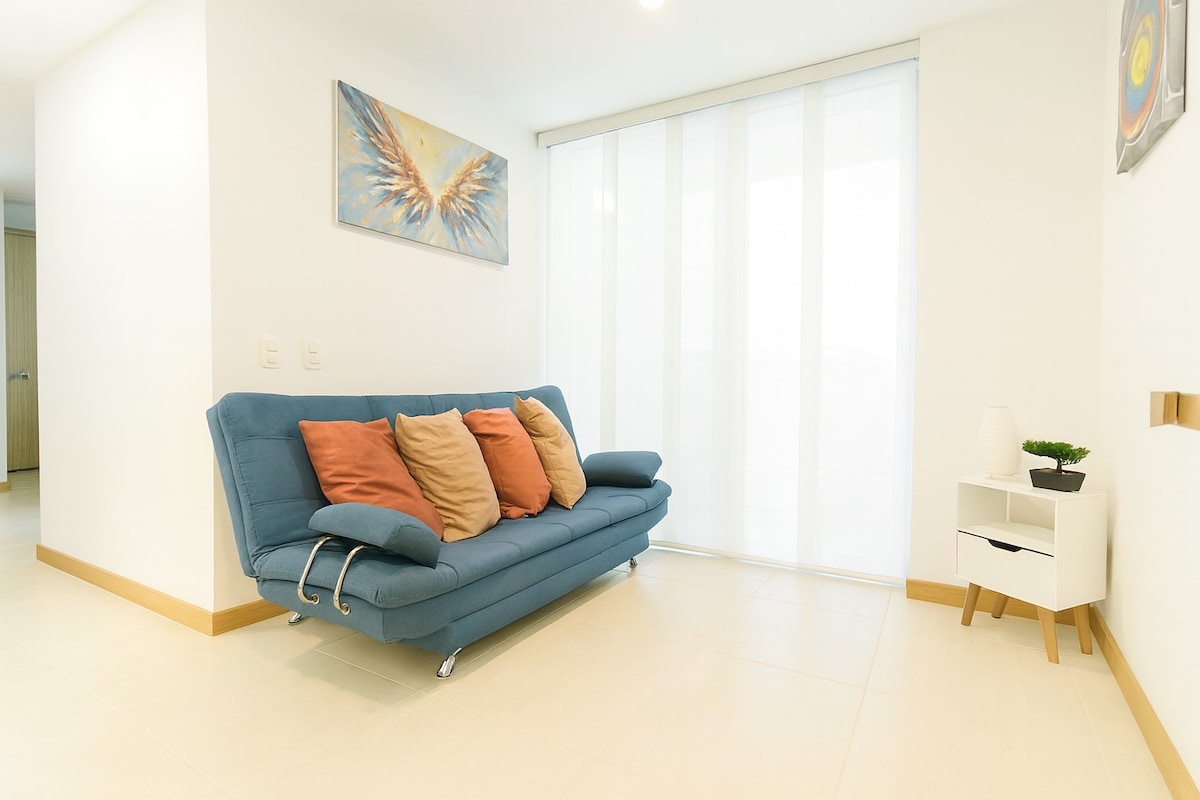 Discover the comfort and convenience of this apartment, ideally located near cable, shopping malls, and universities. The space features WiFi, a 1.40 double bed, a 1.20 double sofa bed with an additional mattress, and is steps away from restaurants, bars, and the vibrant Zona Rosa. Enjoy free covered parking, a well-equipped kitchen with coffee and herbs at your disposal, a gym, and 24-hour security. Perfect for a safe, comfortable and pleasant stay.