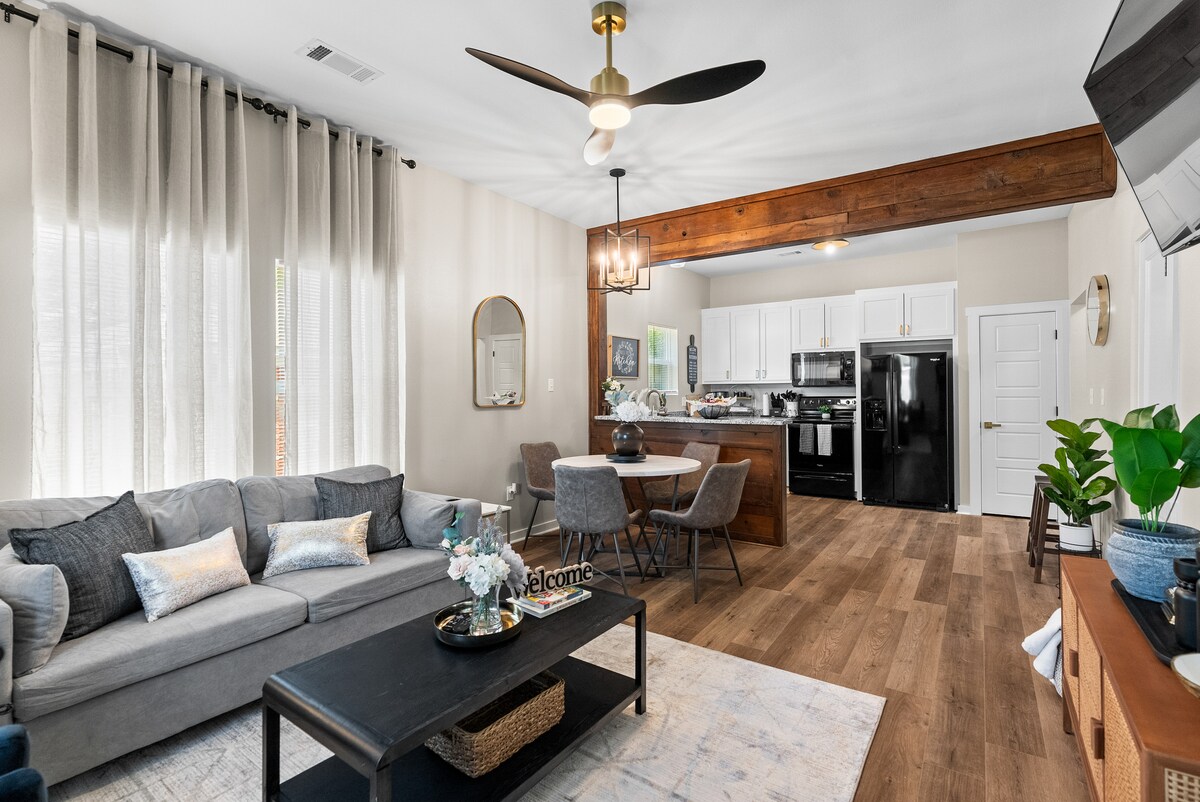 “Twisted Pines Luxury Escapes” is a Romantic treetop retreat with tranquil pond views and a glowing fountain,set on five private acres of pure privacy. Indulge in the deep soaking tub, enjoy heated towel rack, or unwind in the hot tub beneath a blanket of stars. Spend your days playing cornhole, ping pong, & paddling across the pond in a paddle boat provided , step into a full retro arcade tucked inside a classic Airstream camper.Nature,luxury, & endless fun combine for an unforgettable getaway