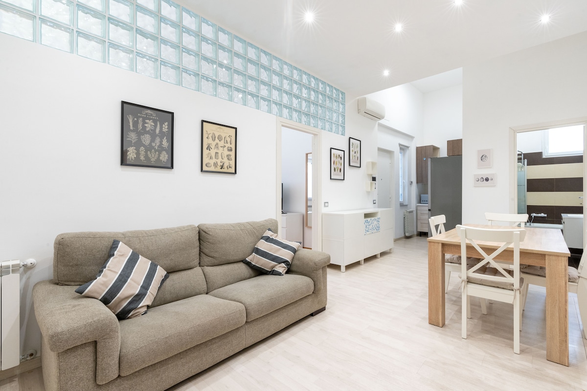 Lovely apartment in Piazza San Giovanni, in the center of Rome, it is possible to reach in 10/15 minutes historical places and monuments such as the Colosseum, Fori Imperiali, Piazza Venezia.The house is located on the second floor of an elegant and modern building, the house is composed of living room with kitchen area, sofa bed, bedroom, bathroom with large shower and a beautiful terrace.The environment is characterized by elegance, attention to detail and modern / vintage functional style.