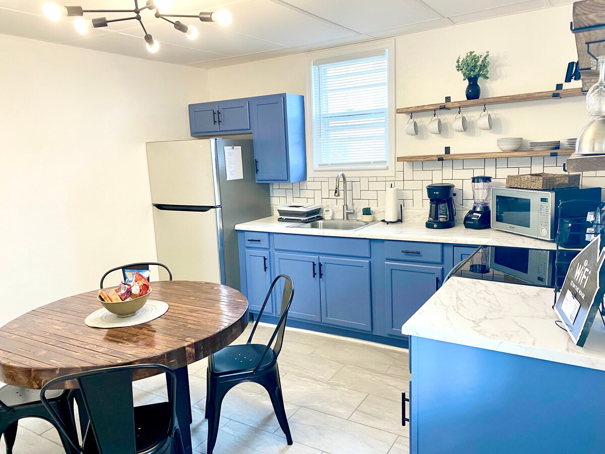 *NOW WITH FREE ON-SITE PARKING* Welcome to our charming, historic, and newly renovated one-bedroom ground floor apartment nestled in the heart of downtown Roanoke, Virginia. This exquisite property is a stone's throw away from a plethora of local breweries and restaurants, making it an ideal location for foodies and craft beer enthusiasts alike. It is fully equipped for a quick overnight business trip or a long term stay. The unit comfortably sleeps 4 with a king size bed and sleeper sofa.
