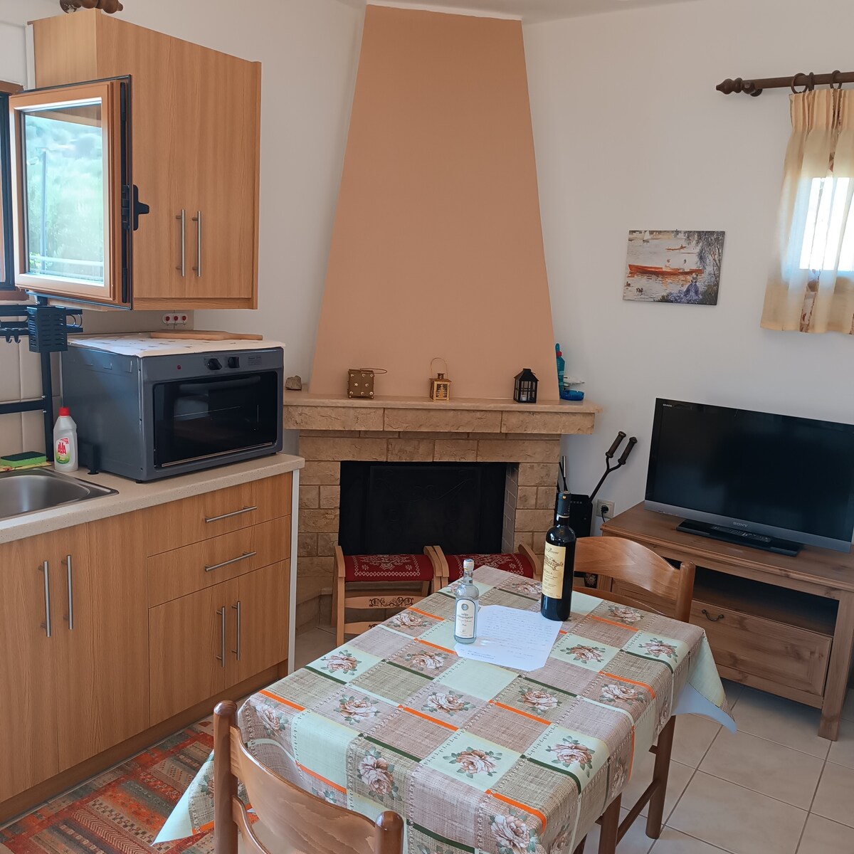 Traditional house in the center of the village, right next to the square, recently renovated. It also has a large terrace overlooking the mountain. Finally, the house is 5-10 minutes by car from the slopes in Manikia and 10 minutes from the sea. Traditional house in the center of the village, right next to the square, recently renovated. The house is only 5-10 minutes by car from the climbing area in Manikia Village and 10 minutes from the sea.