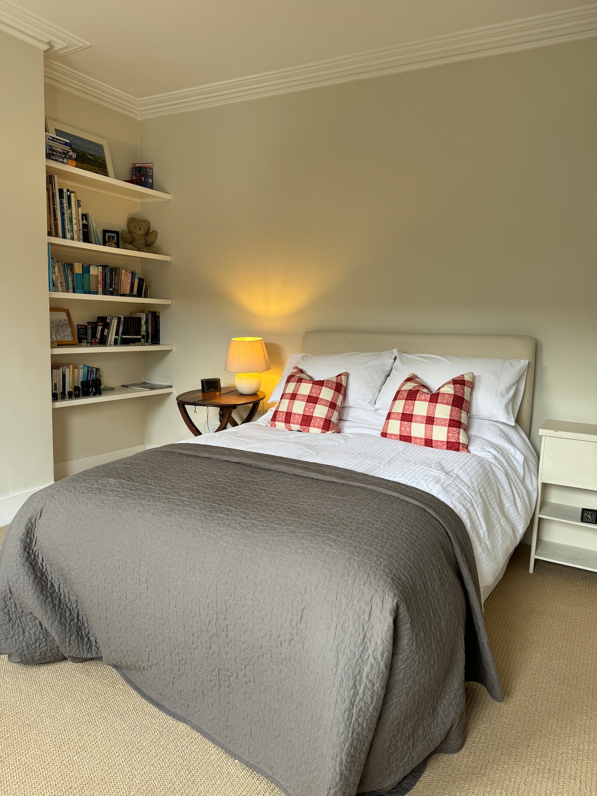 Your private and spacious bedroom is situated on the first floor, at the front of our house and has a unique view over the tennis courts - for any tennis fans it’s also an easy walk from our home to the All England club at Wimbledon. High quality bed linen and towels are provided along with ample storage, TV and WiFi. There is central heating and an armchair for relaxing . A desk and chair are available for those guests who need to work whilst staying with us. Free parking is available.