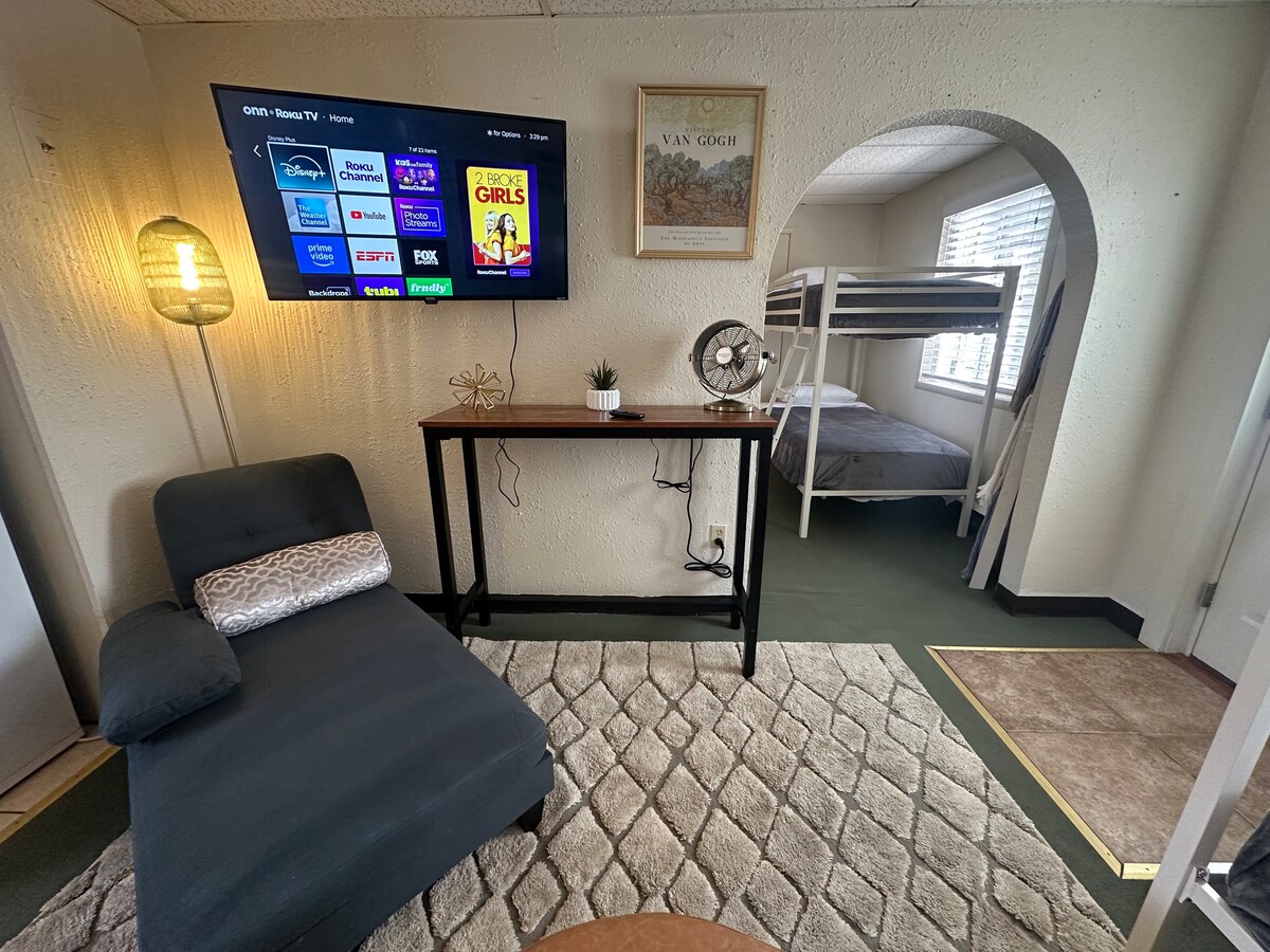 No more cramming your family into 2-3 hotel rooms like the McCallisters on a Florida Christmas Vacation! Come stay in what used to be the manager's quarters of our classic, mid-century motor lodge. All streaming services are paid for. Starlink Internet. Centrally located, perfect basecamp for family desert exploration with great places to eat within walking distance when you return.