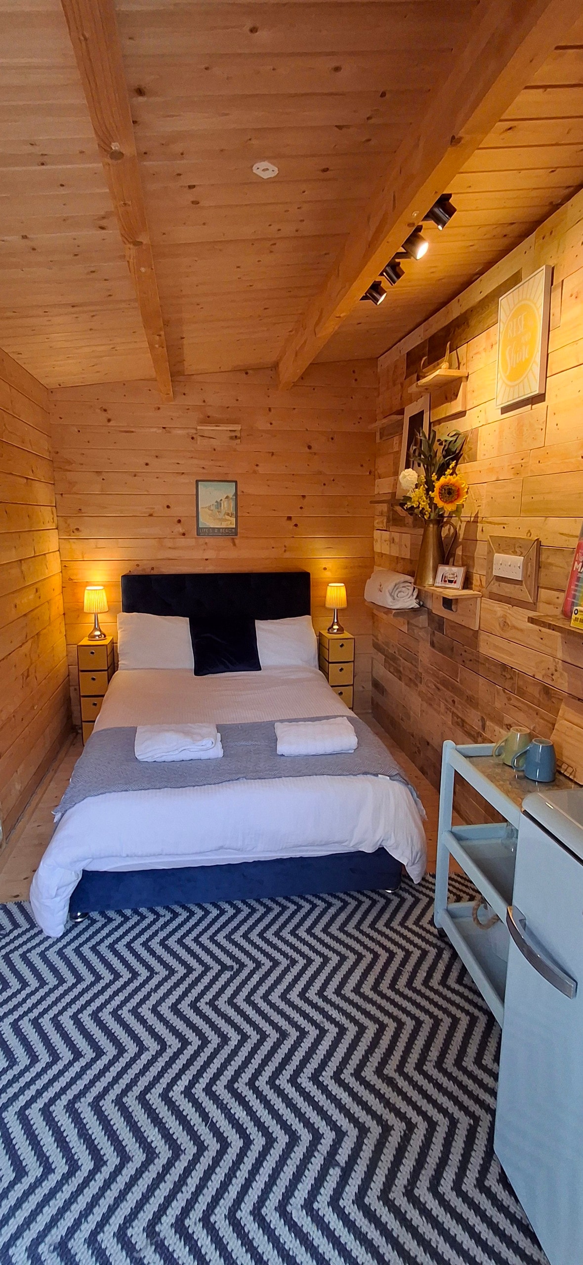 We look forward to hosting you in our cosy, seaside-themed cabin set in our garden. Suitable for couples or friends as there's also a sofa bed if needed (please advise at the time of booking). (Please note we are unable to accept children under 12.) Perfect as a base for exploring the local area of Herne Bay with great trails for bikes/walks and runners. A welcome basket for a light breakfast is provided, along with teas, coffee and milk/juice.