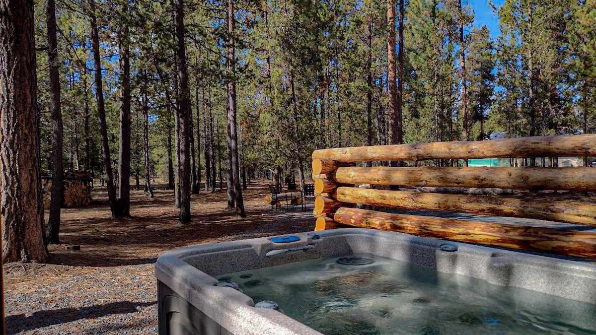 Private guest suite within our newly 2023-built home. Separate backyard area with Cabin In Deschutes Spa where the modern amenities meet the beauty of nature. Rest as calm as the doe and the fawns outside while staying seamlessly connected with high-speed 300 Mbps Wi-Fi. Savor the luxury of a hot tub and infrared sauna while watching as the squirrels teach their young to leap trees. This is life — a campfire to relax by, a sunset to inspire — in a home, guarded by pines framing the Milky Way.