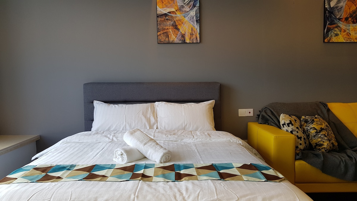 Amazing location in the heart of Johor Bahru, it is undeniably your first and preferred choice for your stay in Johor Bahru. Stylish cozy studio apartment with hotel facilities. Food heaven, nightlife entertainment & numerous shopping mall are all in surroundings. Free high speed Wi-Fi, fresh towels, equipped kitchenette, washing machine, 24hr security, excellent location! Ideal for couples, solo adventurers and business travellers.