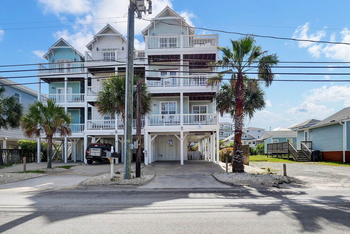 3bd, 2.5 bath. AMAZING views of intercoastal. Community pool (open NOW) & the ocean is across the street! Level 2 EV charger included. Golden Tee arcade, 3-in-1 foosball, hockey, billiards upstairs. Large connect-4 in the carport.. Dock where you can fish, kayak (included), paddle board (included). 9ft foam surf board to ride waves. Open plan upstairs w/ updated kitchen that has granite and all the necessities. King, Queen, and bunks w/ 4 flat screen TVs.