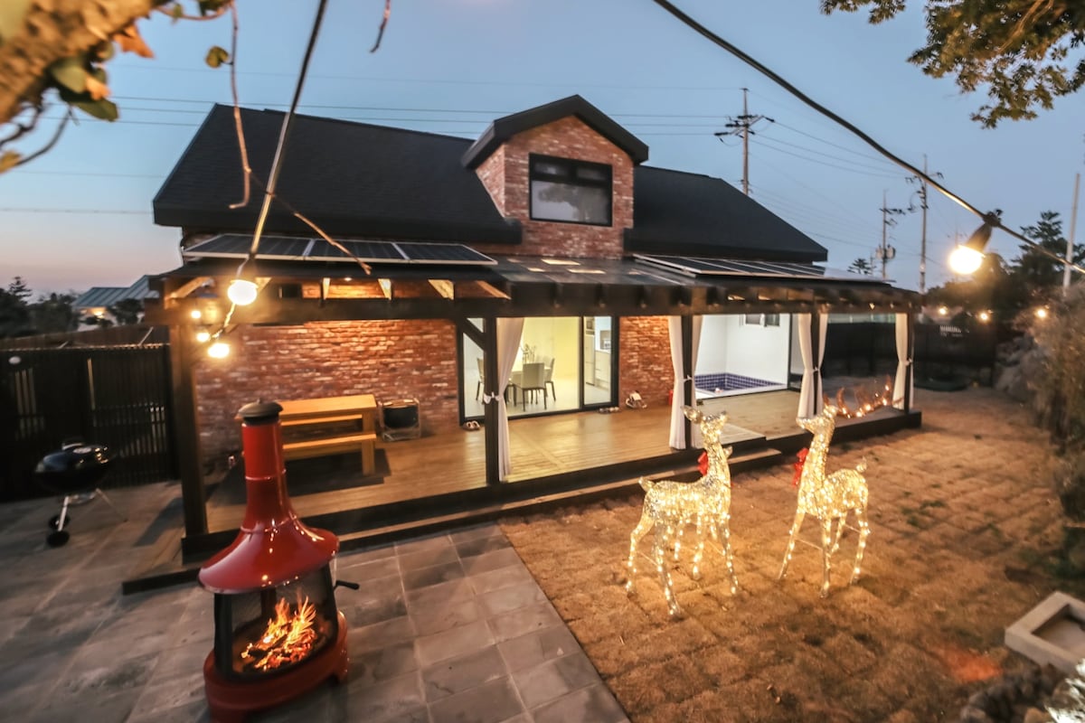 <노늘> 제주의 작은 마을 속 동화같은 집 (야외 벽난로,노천탕,아름다운 정원,오션 뷰)