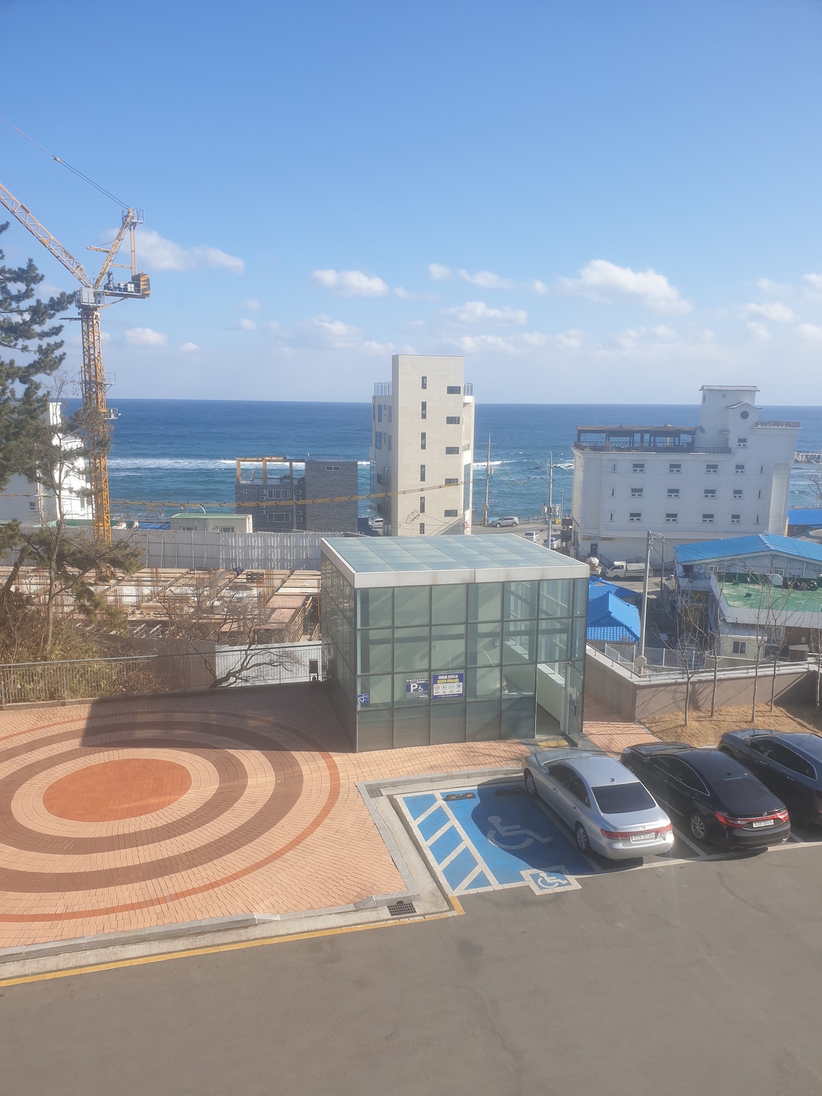 110m walk from the living room to the seashore where you can see the sunrise (Youngjin Beach, where the drama Goblin has a seawall)