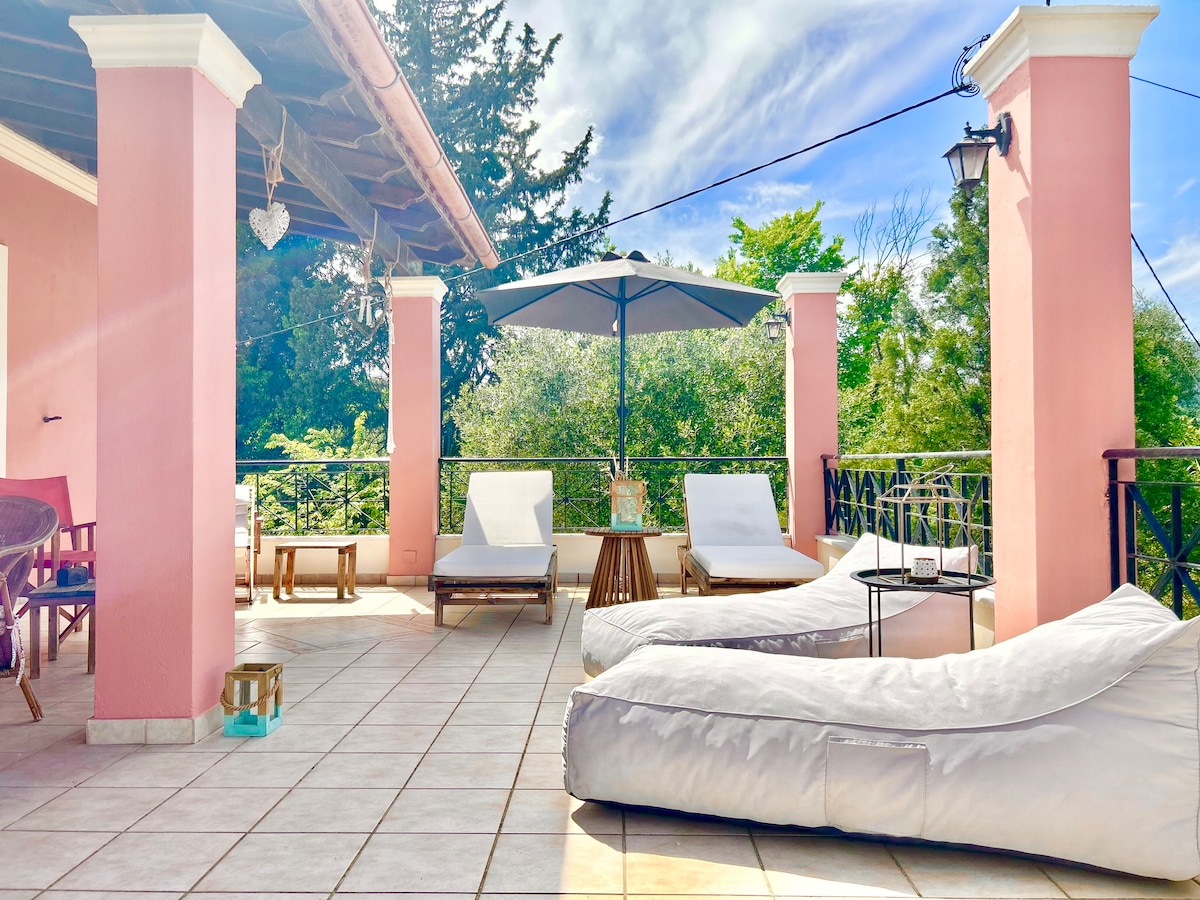 It's a comfortable studio away from crowds! Located exactly on mountain ⛰️, into the nature, in a relatively isolated spot of Strinilas, an almost remote, traditional village with the highest altitude in the island, in the foothills of Mountain Pantokrator, whice is the highest top of the island. In the front terrace guests can enjoy the sunset 🌄, with a panoramic view of the north coast of Corfu and Diapontia islands! From the garden you can enjoy the view of a valley 🌳and green mountains!