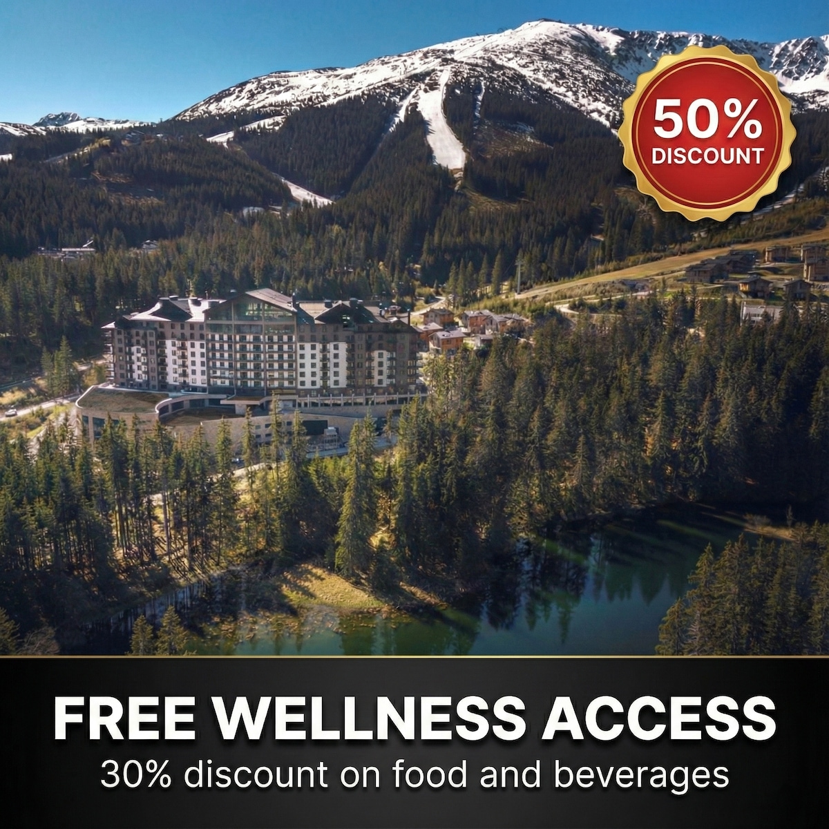 Welcome to Swiss Advantage King Room, located on a high floor of the luxurious 5-star Damian Hotel, right in the heart of the Jasná Ski Resort. Enjoy a breathtaking panoramic mountain and ski-slope view from your own balcony. Apartment offers the comfort, elegance, and premium amenities of a top-rated resort, with full access to all hotel facilities. Included : Wellness & Spa access, swimming pool, Gym, Indoor parking, 30% discount on food & beverages at all hotel restaurants and bars